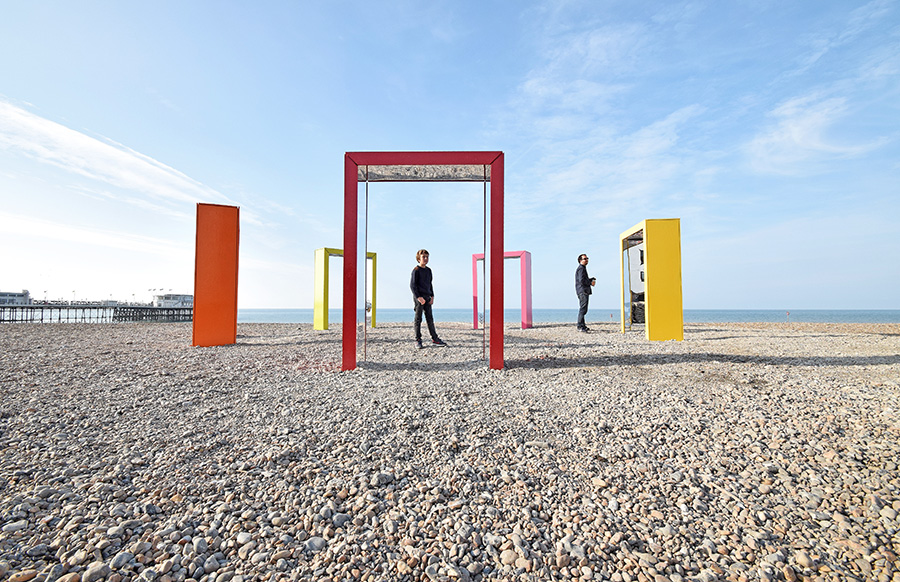 The doorways installation takes a familiar architectural form and places it out of context to create a playful environment for the public to engage with.