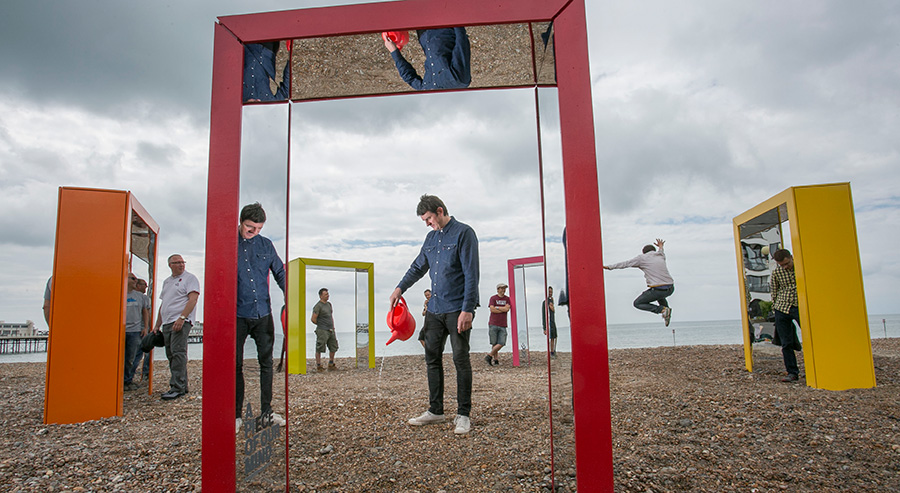 The appearance of this branded environment on Worthing beach was designed to coincide with the summer solstice to help maximise publicity. This worked, with the national press dubbing it 'Doorhenge'.